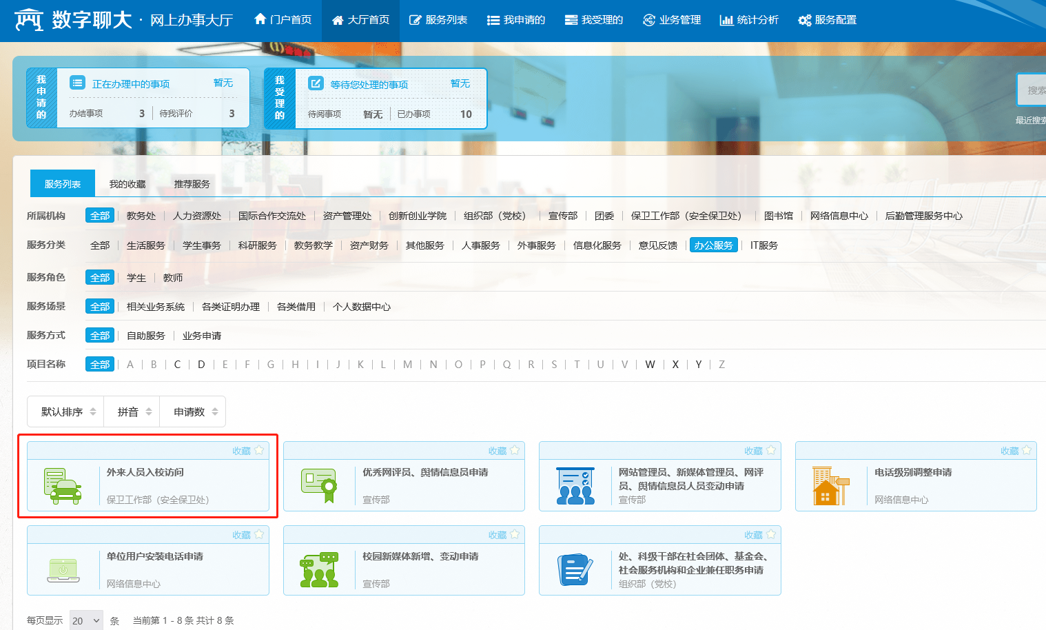為保障良好安全的校園生活學(xué)習(xí)環(huán)境,校外人員進(jìn)校需辦理入校申請(qǐng)。可通過(guò)“辦事大廳-聊城大學(xué)外來(lái)人員(車(chē)輛)入校申請(qǐng)”進(jìn)行申請(qǐng),并仔細(xì)閱讀申請(qǐng)頁(yè)面的辦理說(shuō)明。