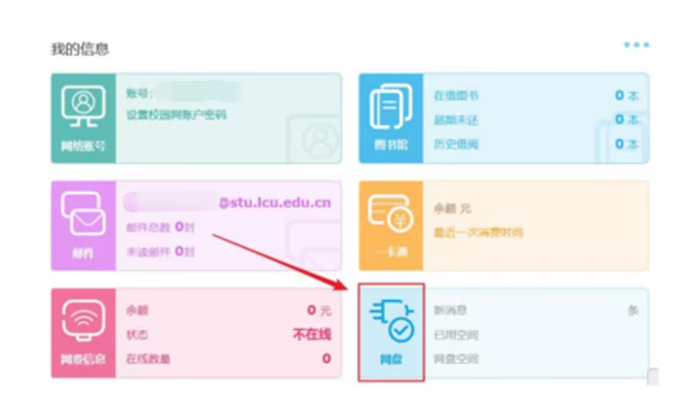 (1)進入數字聊大,在主頁面進行下拉,找到【我的信息】模塊中的【網盤】,點擊按鈕,進行授權。