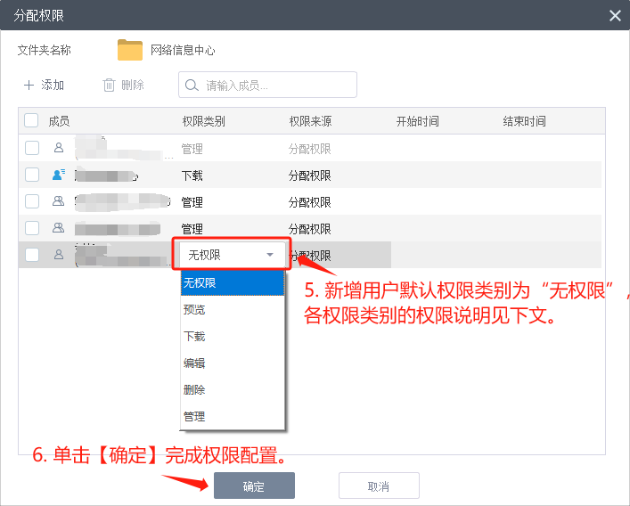 (2)無權限:無任何權限。常用作對小范圍成員進行個別性的管控。