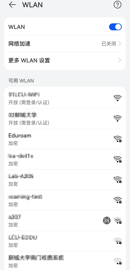 1.打開“WLAN”,點擊名為“Eduroam”的網絡,進入登陸設置界面;