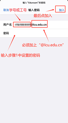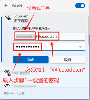 2.用戶名:輸入 學號或工號@lcu.edu.cn;