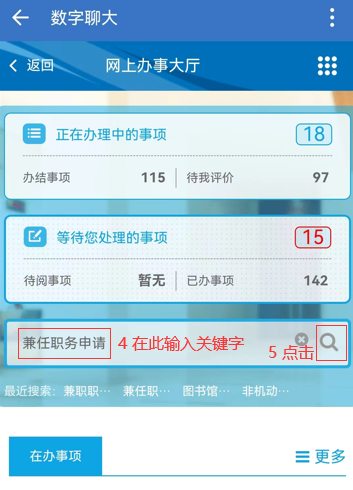方式二:打開瀏覽器,進入數字聊大,在頁面頂部導航欄,點擊“辦事大廳”,后續步驟參照以上操作即可。