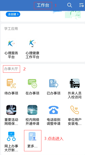 方式一:從企業微信工作臺進入辦事大廳(建議)