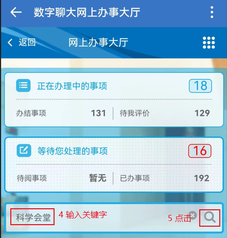 方式二:打開瀏覽器,進入數字聊大,在頁面頂部導航欄,點擊“辦事大廳”,后續步驟參照以上操作即可。