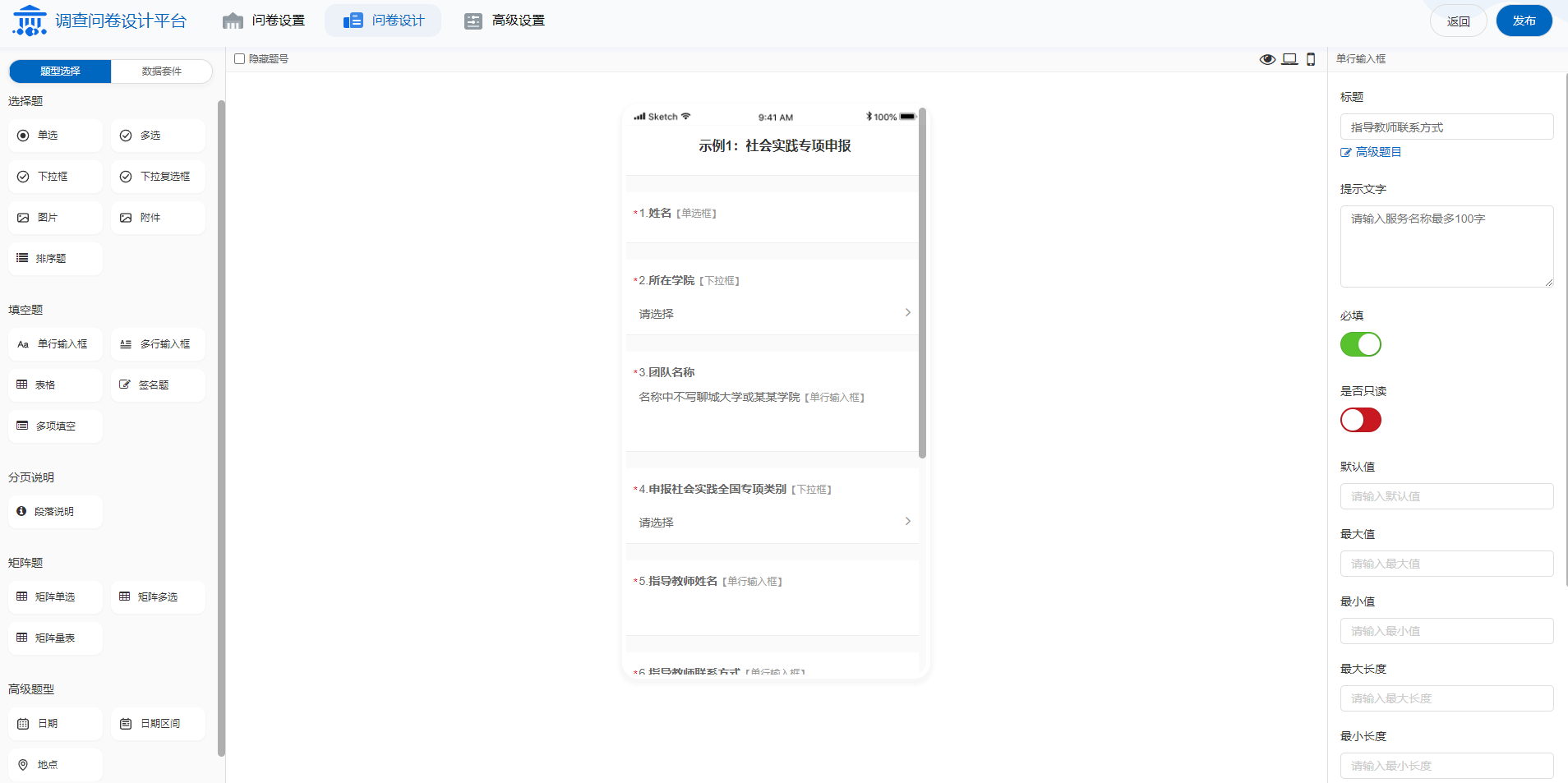 為用戶提供以拖拽方式創(chuàng)建調(diào)查問卷的工具。