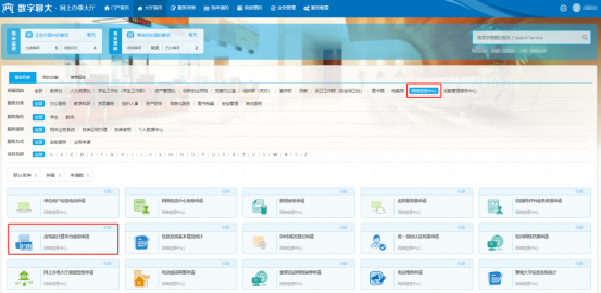 方式二:網上辦事大廳。打開瀏覽器,登錄數字聊大,在頁面頂部導航欄進入“辦事大廳”,點擊“網絡信息中心”,選擇“高性能計算平臺使用申請”發起流程。