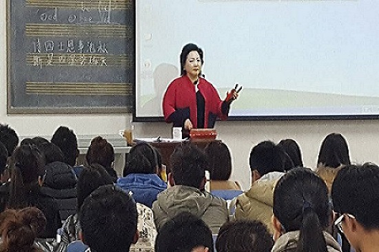 籍薇講師首先做自我介紹,并介紹了自己的人生經歷,觸動了在座每一名聽講同學,為同學們講述了一個唯有拼搏努力才能成功的道理。隨后,籍薇講師在就曲藝的由來、含義,以及京韻大鼓與梅花大鼓的特色、區別等方面進行了詳細論述,并做現場演示,用輕松交流的方式與在座每一名學生進行互動,現場氣氛歡快融洽。其次,在吐字發音,普通話標準等方面,親身示范,充分提高在座各位同學的音樂素質。籍薇講師現場表演梅花大鼓作品《黛玉葬花》并現場教學作品《四世同堂》,引發全體大合唱。最后,音樂學院何麗麗教授做總結發言,感謝籍薇講師的到來,肯定戲曲藝術的貢獻,為講壇劃上圓滿句號。