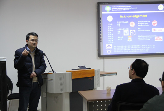 李于,博士,博士生導(dǎo)師,中國科學(xué)院上海生命科學(xué)研究院營養(yǎng)科學(xué)研究所研究員、研究組長。活動伊始,他介紹了脂肪肝和糖尿病等疾病的病理生理學(xué)機(jī)制,就該課題的研究方法及應(yīng)用前景作了詳細(xì)的闡述。緊接著,他介紹了利用肝臟特異性的SIRT1基因敲除小鼠發(fā)現(xiàn)SIRT1誘導(dǎo)肝臟激素FGF21的表達(dá)和分泌的研究內(nèi)容,本研究表明激活SIRT1-FGF21通路可能為臨床治療脂肪肝和糖尿病提供了一種新思路。活動最后,李于教授就老師和同學(xué)們的提問作出了詳細(xì)解答。
