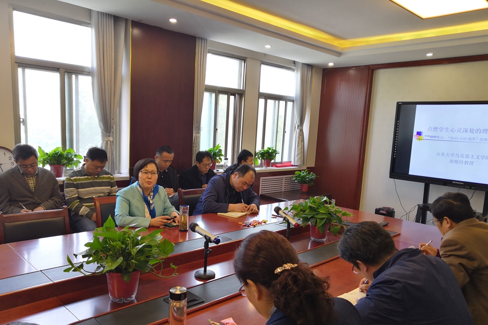 4月28日上午,山東大學馬克思主義學院副院長、博士生導師徐艷玲教授做客馬克思主義論壇,作了《點燃學生心靈深處的理想火種——KMP模式:“知識-方法-境界”的教改實踐探索》主題報告。報告由學院副院長李士峰主持,學院全體教師聽取了報告。