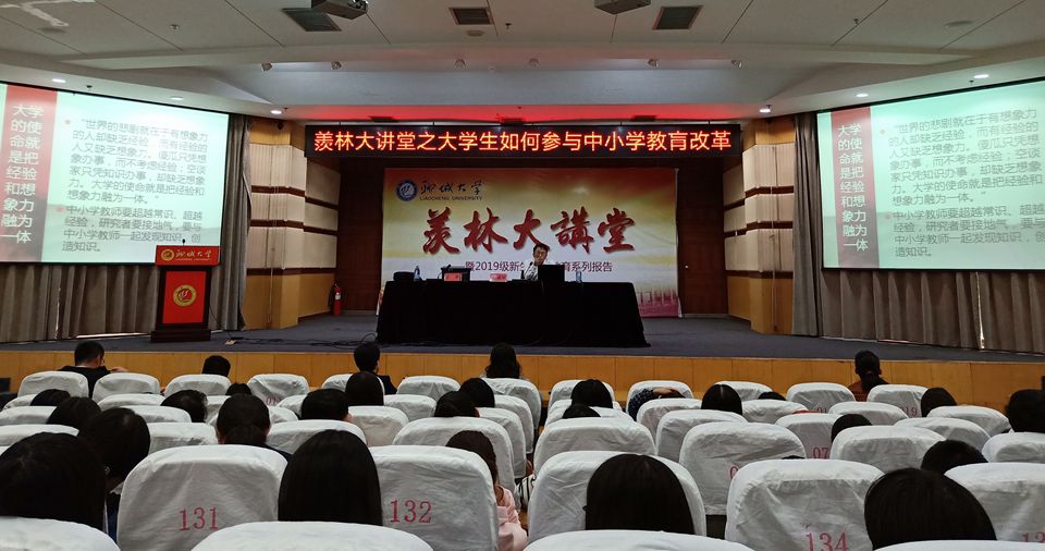 10月11日,由學生工作處主辦、教育科學學院承辦的第40期“羨林大講堂” 在西校區圖書館大報告廳舉行。上海師范大學教育學院陳建華教授應邀做客本期羨林大講堂,為300余名教科院新生作題為《通過參與式研究介入中小學教育改革:以學校發展規劃為例》的學術報告。報告會由教育科學學院副院長王平主持,教育科學學院黨總支副書記康延軍、團委書記吳偉偉等參與本次報告會。