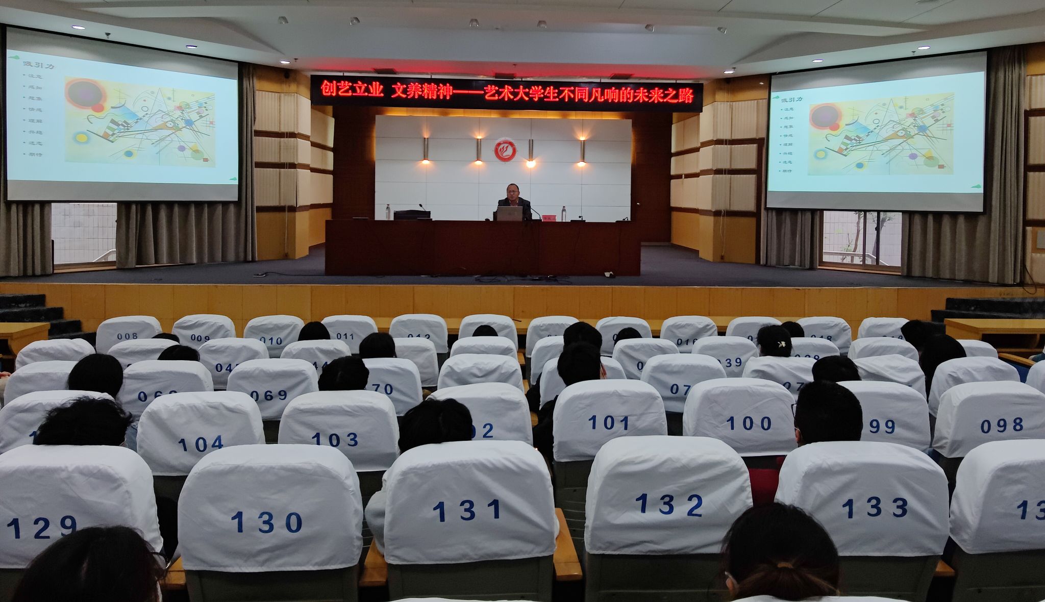 任家斌以自己年少時的求學歷程為切入點,從四個方面深入闡述了藝術大學生的就業之路。第一,藝——手、腦、心,創意在想到和做到之前,創藝在想到和做到之間;第二,業——食、夢、情,方向在想到和做到之前,立業在想到和做到之間;第三,文——虛、實、根,品味在想到和做到之前,味道在想到和做到之間;第四,神——事、識、師,問學在想到和做到之前,學問在想到和做到之間。他結合個人多年學習心得和文化創業經驗,講述文化藝術創作的情懷,啟發學生要緊貼自己的專業,學好謀生的技能;要沉下心來,更深切地去體會這個社會的需求,明確自己在社會需求中的定位與方向;要堅持自己的理想,努力奮斗,腳踏實地,走出一條不同凡響的未來之路。