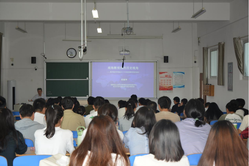 9月14日上午,武漢大學“國家領土主權與海洋權益協(xié)同創(chuàng)新中心”主任、中國邊界與海洋研究院院長胡德坤教授應邀做客聊大講壇,作了題為《南海斷續(xù)線的歷史視角——評臨時仲裁庭關于中國南海斷續(xù)線的“裁決”》的學術報告。報告會由歷史文化與旅游學院院長趙少峰主持,歷史文化與旅游學院部分師生參會旁聽。
