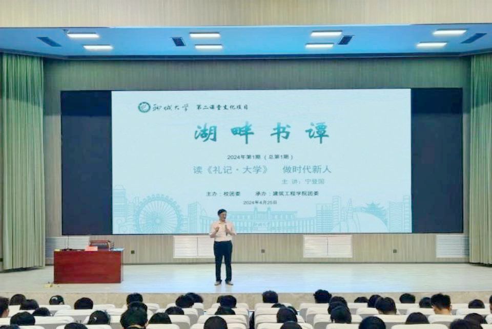 為開拓同學們的視野,提升文化素養,4月25日,由校團委主辦、建筑工程學院承辦的第37期“湖畔書譚”講座于東校區實訓樓報告廳舉辦,聊城大學文學院教授寧登國受邀作題為“讀《禮記·大學》 做時代新人”的報告。