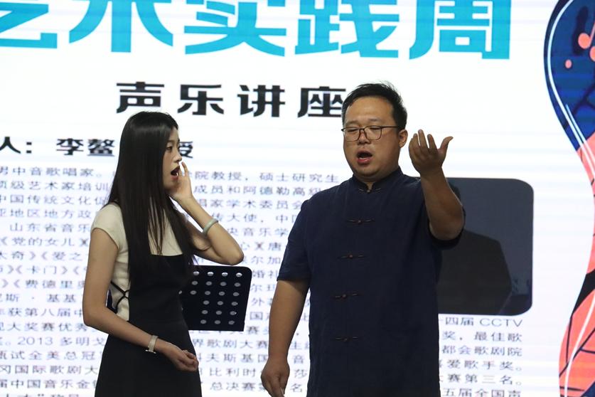 在5月13日至18日舉辦的第四屆藝術實踐周中,音樂與舞蹈學院先后邀請山東藝術學院李鰲教授、山東師范大學黃明水教授兩位聲樂專家講授公開課,為聲樂專業學子進行一對一指導,促進人才培養工作。