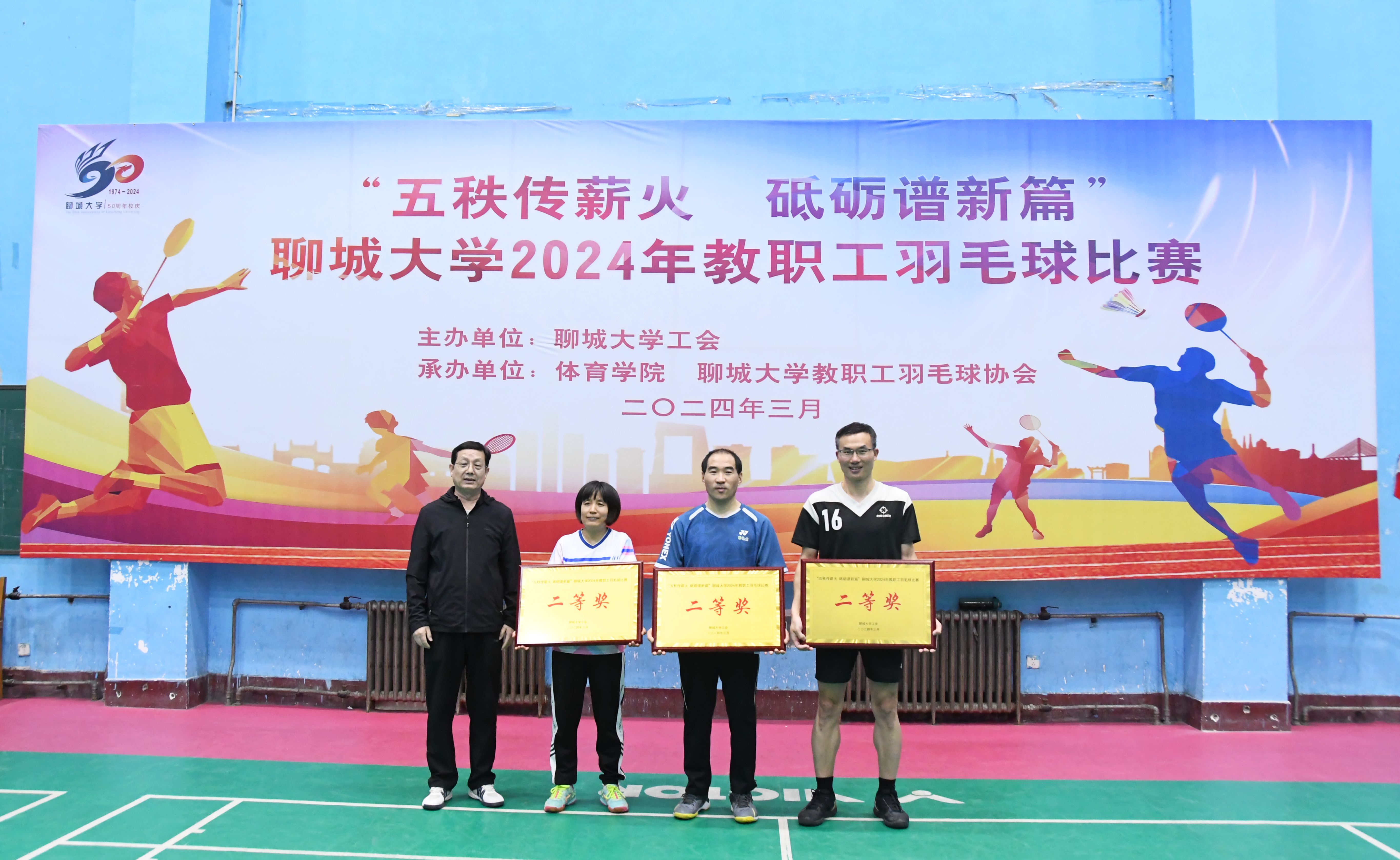3月29日,由校工會主辦,體育學院、教職工羽毛球協會承辦的聊城大學2024年教職工羽毛球比賽,在西校區羽毛球館圓滿閉幕。校黨委書記關延平,黨委副書記、工會主席房增福出席閉幕式并為獲獎單位頒獎。