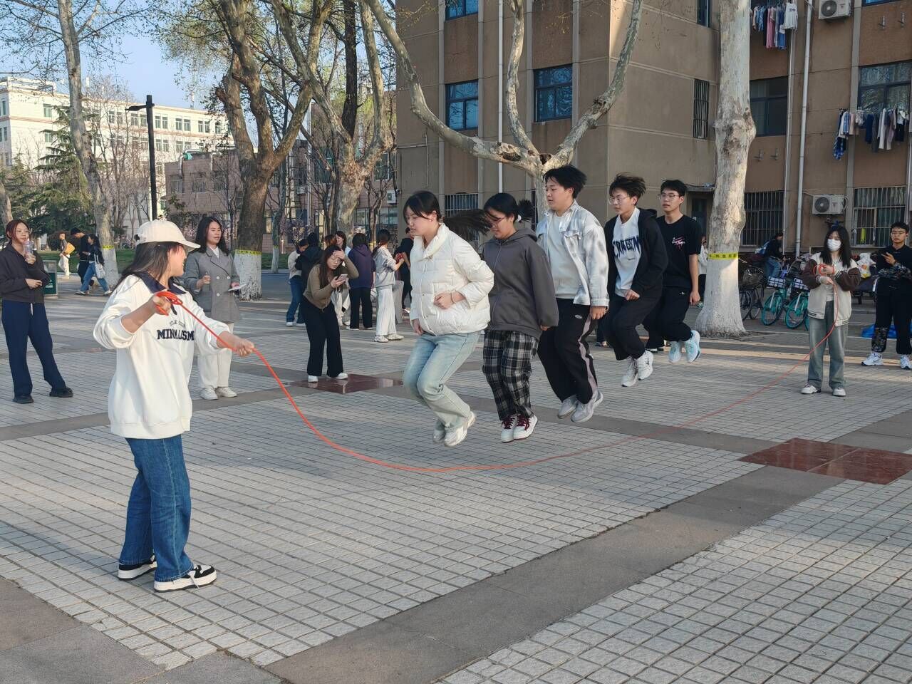 為進一步豐富同學們的課余生活,鼓勵同學們走出宿舍,提高身體素質,3月31日,教育科學學院在五四廣場舉辦“躍動青春 繩彩飛揚”跳長繩比賽,團委書記王瑾、輔導員莫合甫力江參加活動。