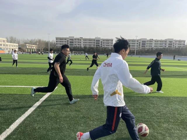 比賽開始前,師生們精神抖擻地走上綠茵場。隨著裁判一聲哨響,比賽正式開始。老師們迅速進入狀態(tài),他們憑借豐富的經(jīng)驗和默契的配合,在場上展現(xiàn)出精湛的球技。傳球、射門,一氣呵成,每一個動作都是那么自然流暢。他們時而快速奔跑,時而巧妙盤帶,時而大力射門,讓在場的觀眾都為之驚嘆。